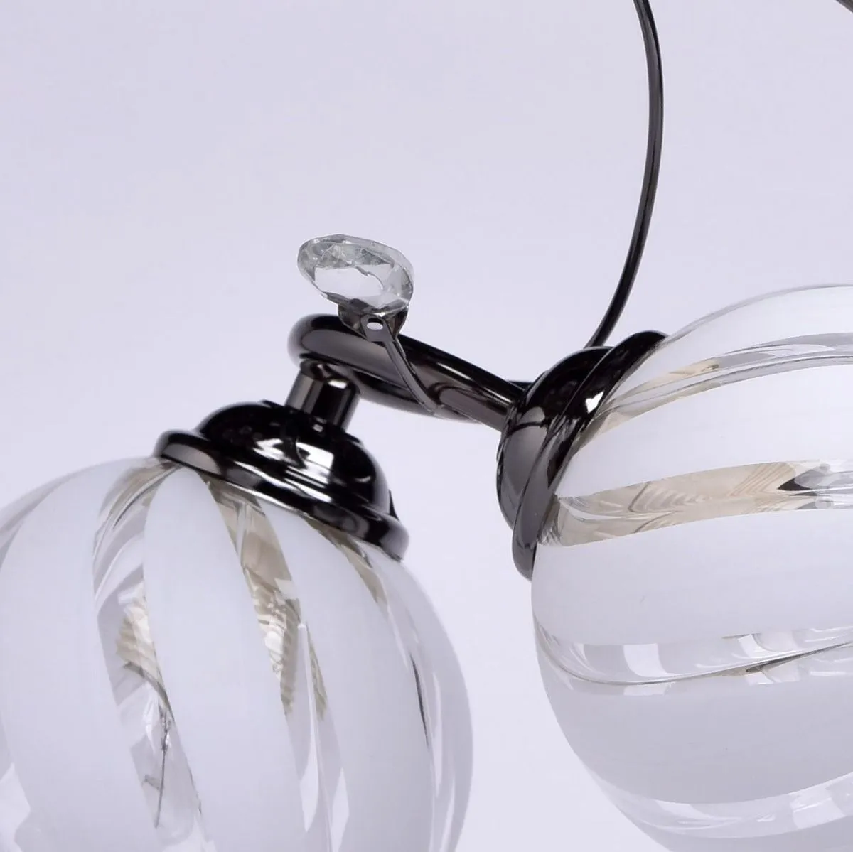 Металлическое основание цвета никеля, плафоны из стекла с рисунком. Декор из декоративного стекла.
