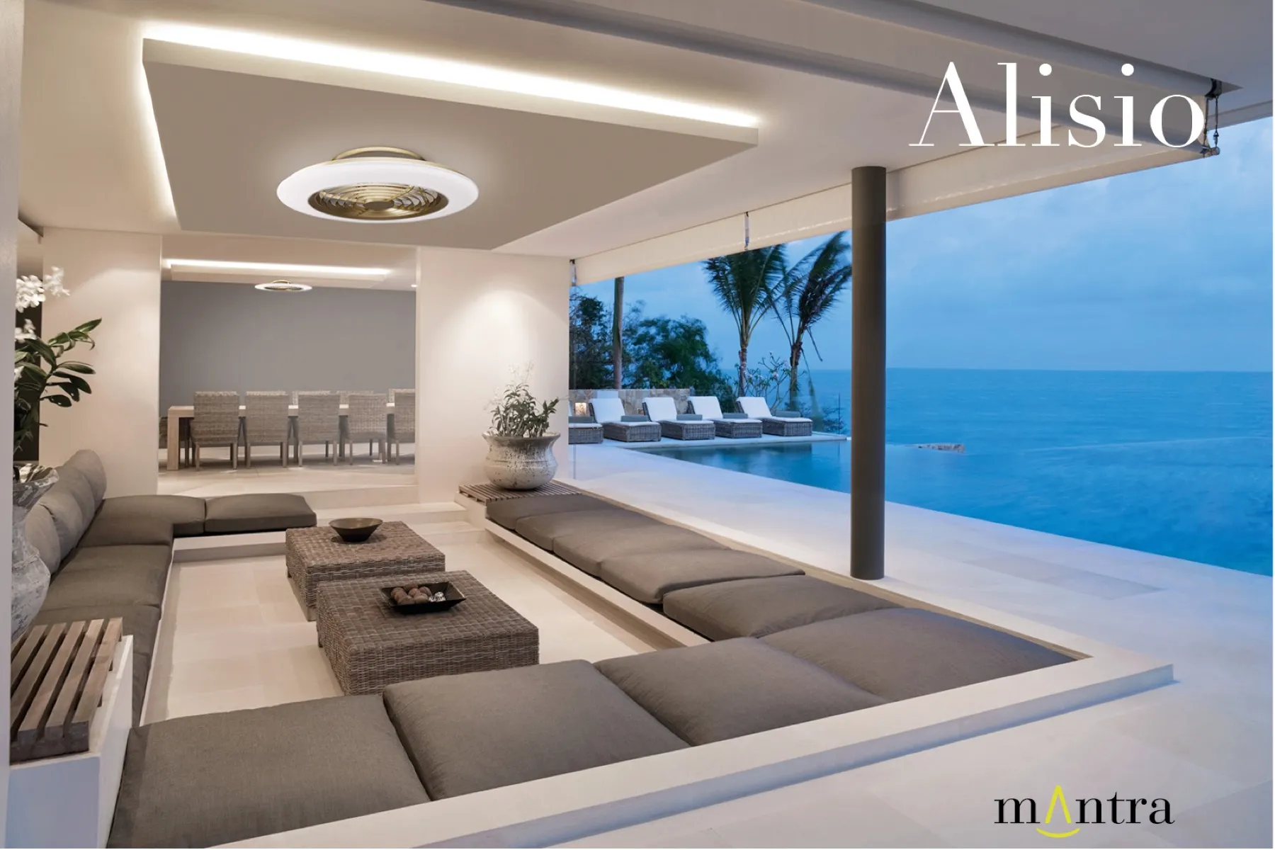 С этой коллекцией Mantra привносит инновации в сектор вентиляционных элементов, добавляя оригинальность и изобретательность с помощью дизайна. Светильник ALISIO способен обеспечить прохладную вентиляцию и обогрев, также как и эффектное освещение комнаты.